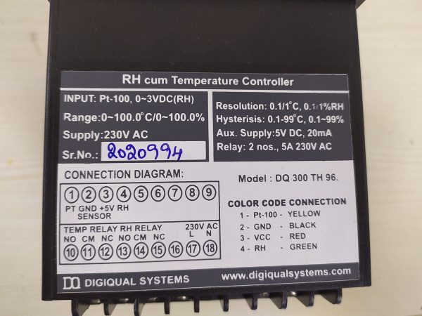 Digiqual Manufacturers of Digital Humidity Temperature Controller Model : DQ 300 TRH 96