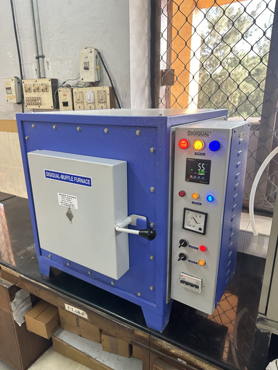 Digiqual High Temperature Grooved Muffle furnace is Double walled chamber inner made of 4 nos. siliminite refractory slabs and outer made of cold rolled mild steel sheets finished in powder coating. Insulation by Ceramic fibre blankets to minimize radiation heat loss. Double walled insulated door mounted on heavy-duty hinges is provided with effective locking arrangements.