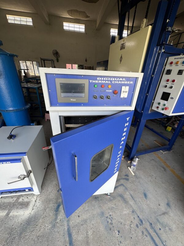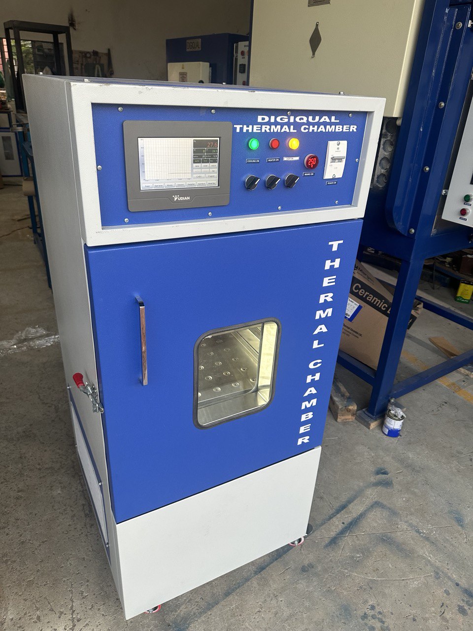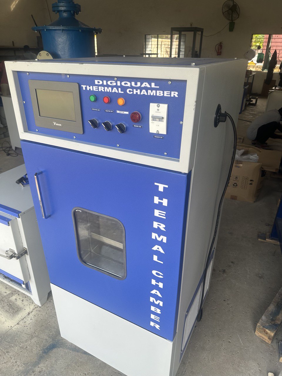 A Thermal Chamber is a precision-controlled environmental testing unit designed to simulate a wide range of temperature conditions. It is used to test the durability, performance, and reliability of products, components, or materials under extreme heat and cold. Thermal chambers are essential in quality assurance, R&D, and production testing across various industries such as automotive, electronics, aerospace, and defence