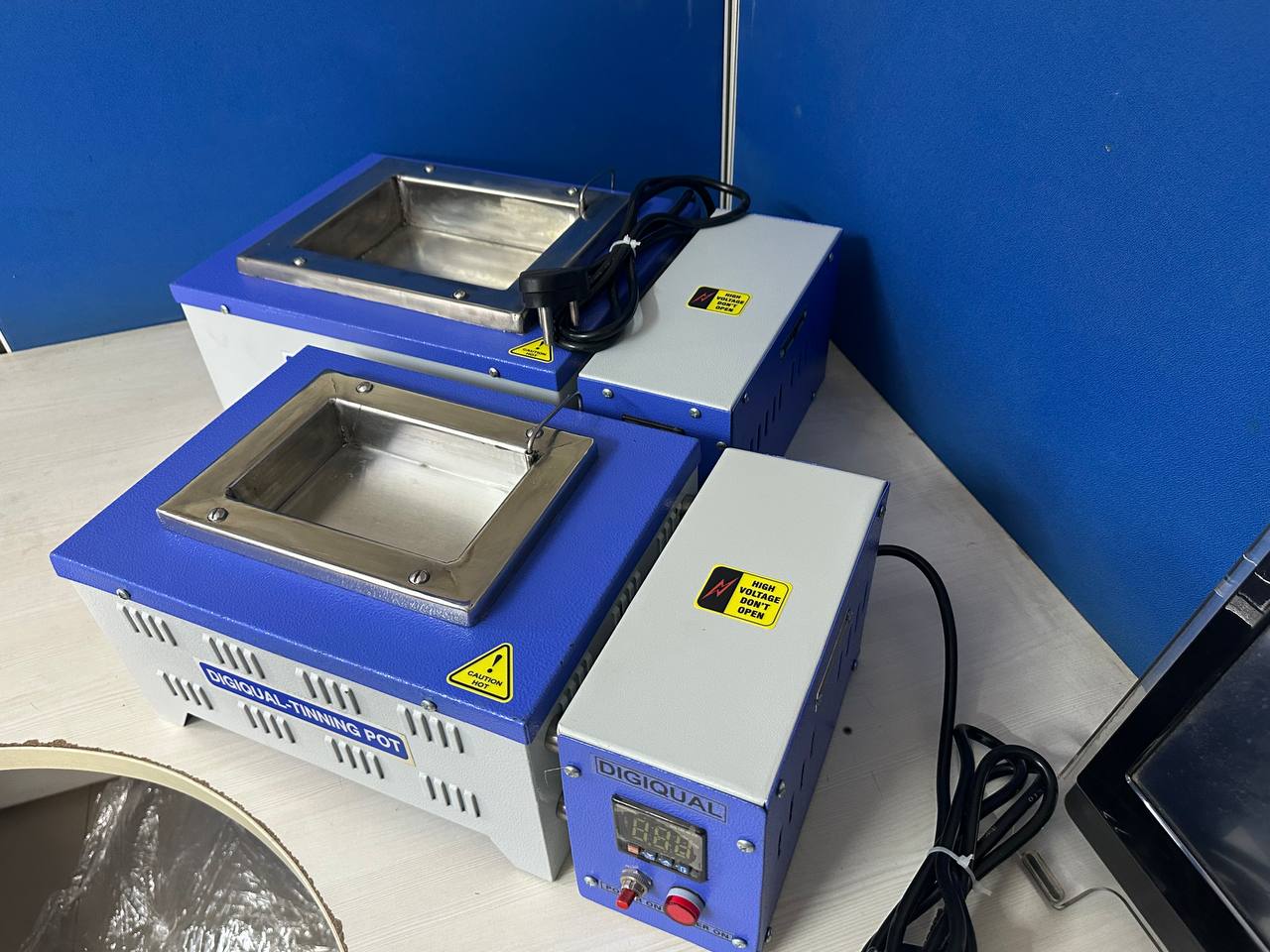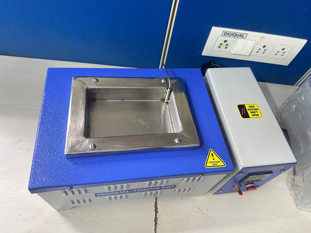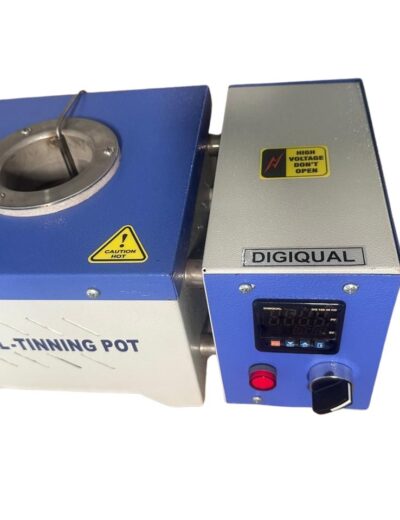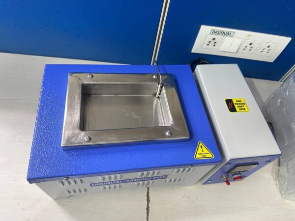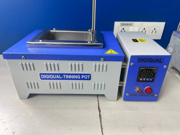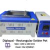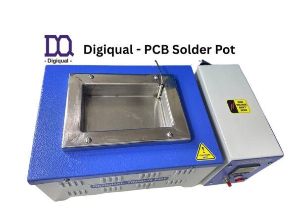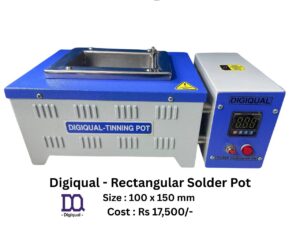 Digiqual manufactures PCB soldering machine, rectangular tinning Pot / Dip soldering machine. Outer chamber made of mild steel powder coated. Inner Chamber ( Pot ) is fabricated out of specially procured SS 316 material or titanium to with stand metal & high temperature.